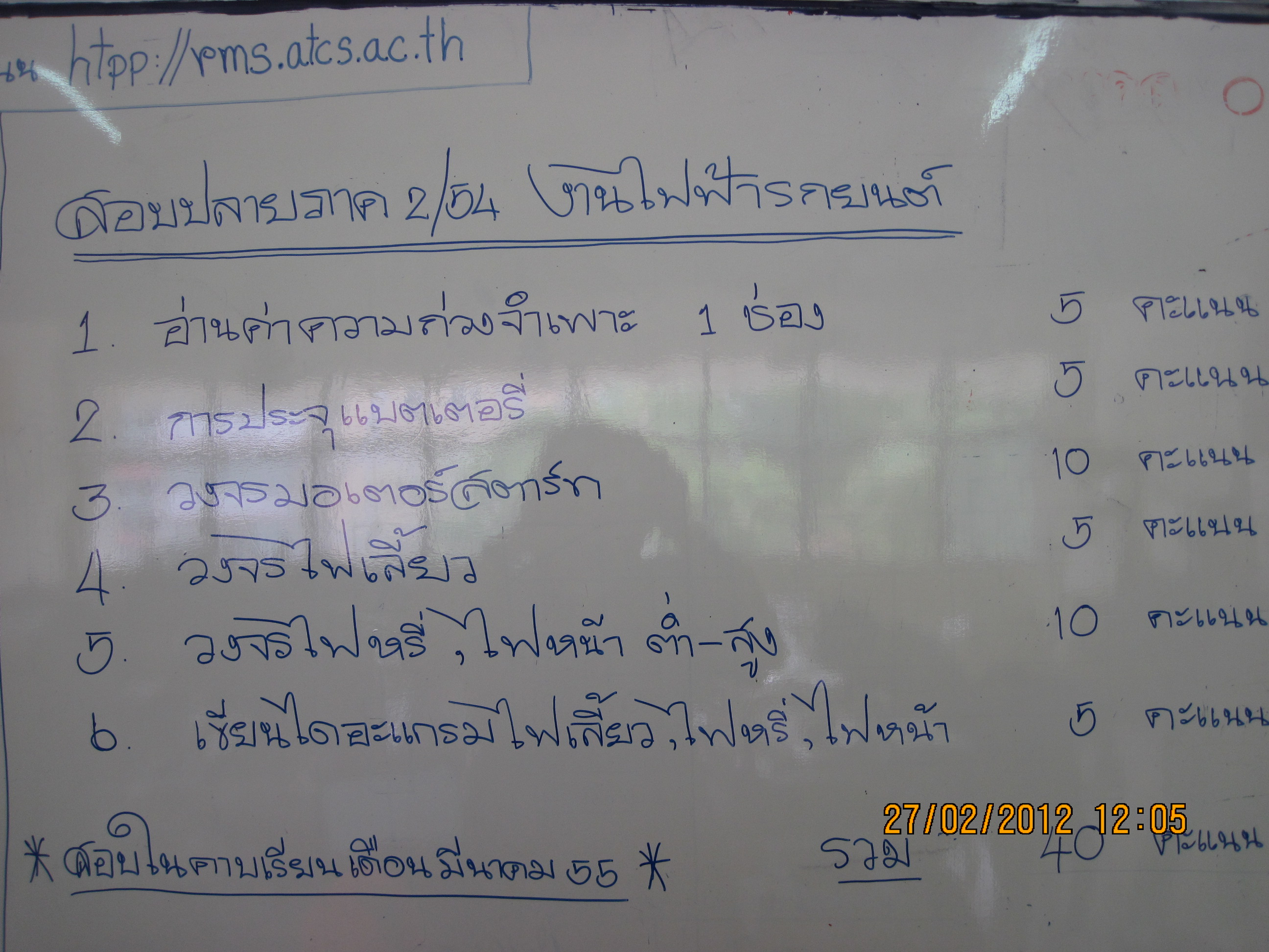 แจ้งสอบปลายภาคงานไฟฟ้ารถยนต์ 2/54
